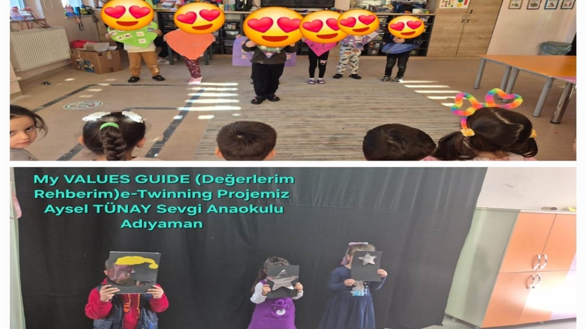 Okulumuz öğretmenlerinden Aysel TÜNAY'ın yürüttüğü My Values Guide (Değerlerim Rehberim) adlı e-Twinning Projesi kapsamında Sevgi-Saygı konulu etkinlik yapıldı.